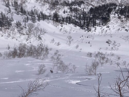 トラバース&登り返しがめんどくなったんでそのまま沢をクルーズ。