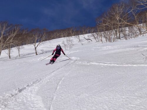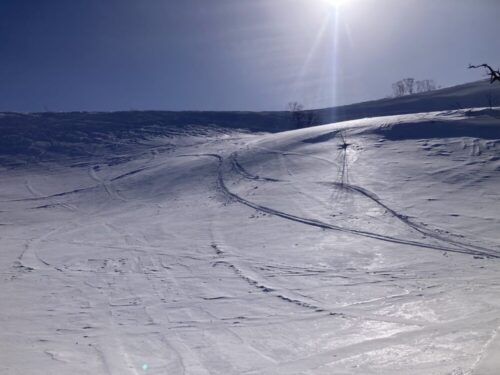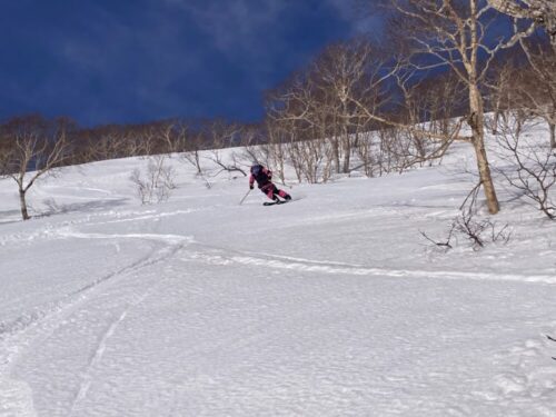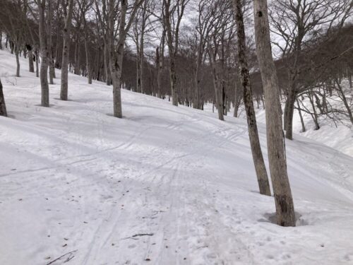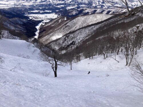 パウダーだったら登り返して遊ぶ所なんですけどね~。