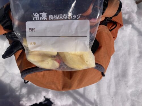 野沢の宿に長年居候する友人が行動食に持ってけ!と、りんごを!