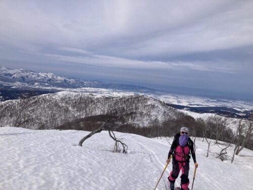 初日はちょっとでも冷えて滑りそうな雪を求めて標高を上げる作戦。