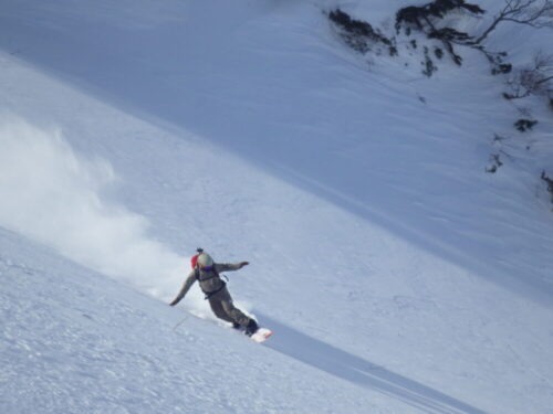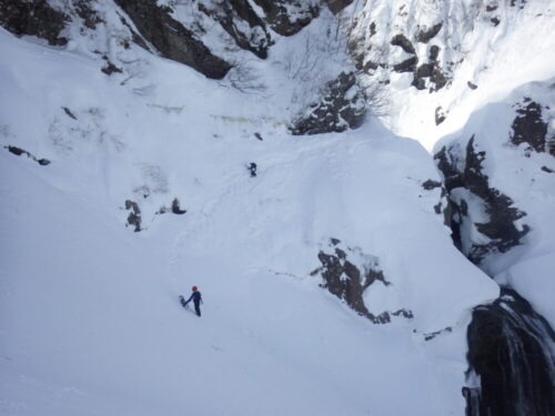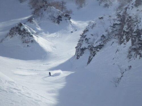 僕達は安全に巻きましたが、恐れを知らない外人は厳しいトラバースを強いられていて見てる方が緊張しました(笑)