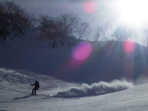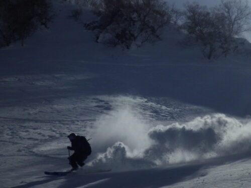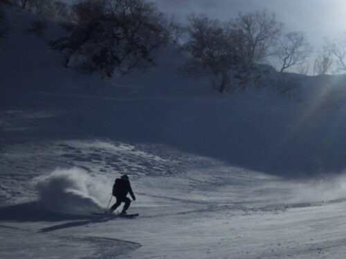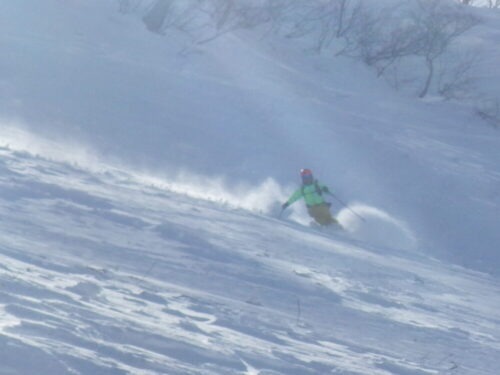 白馬エリアは見事に外したし、わずかな良い雪もアルパインでは昨日の風でチリとなって消えてしまったようです(笑)