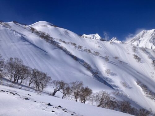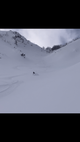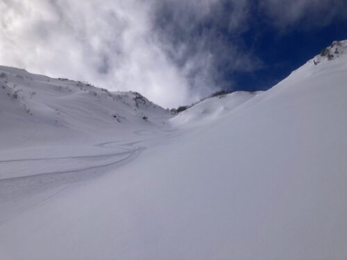 雪崩地形の中で転ばれるとドキドキしてしまいますので(笑)