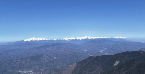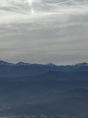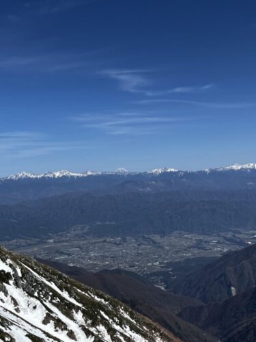 バケツ状態の登山道を一歩一歩登るとあっという間に稜線へ。