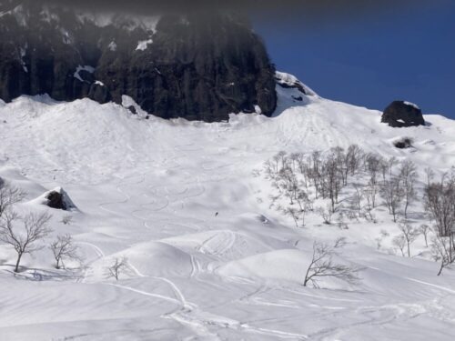 北東面をヒャッホーしていた集団は妙高のボスツアーでした(笑)