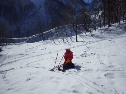 女医のゲストを思い出す、ストックを持って滑るスタイル。