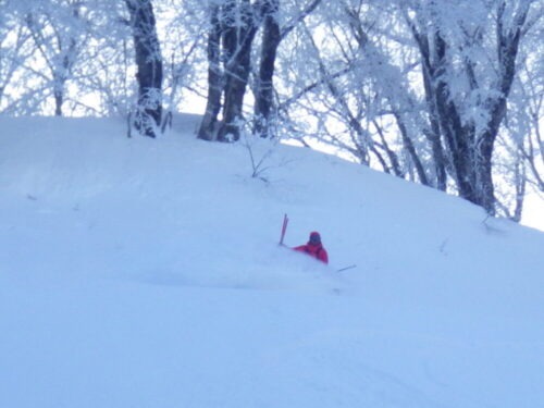 さすがにクラストかも?と、言ってエントリーしたのですがこれまたええ雪継続中でした。