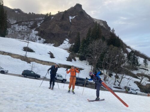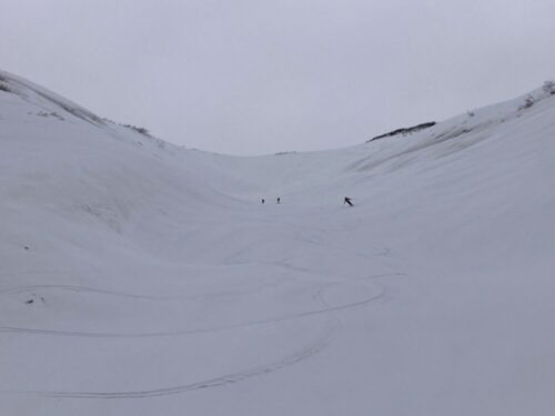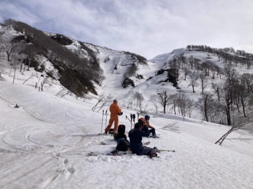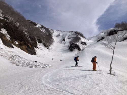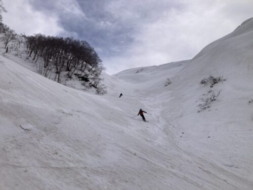 ムジナ沢には先行パーティーがヒャッホーしてる所でした。
