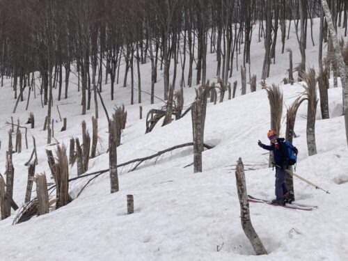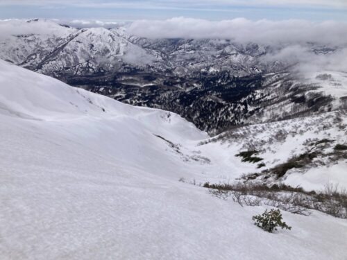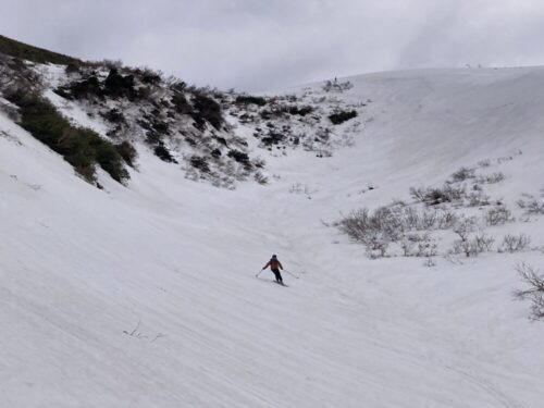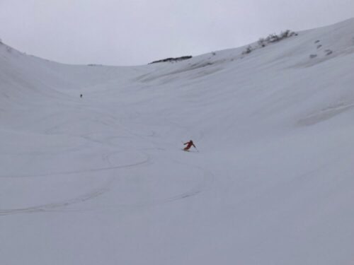 が、少し下ったら落ち着いたのでやっぱり本高地沢を滑る事に。