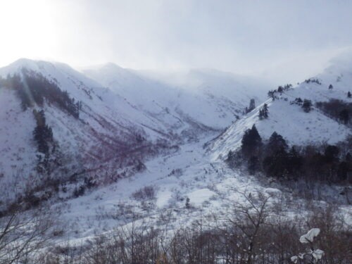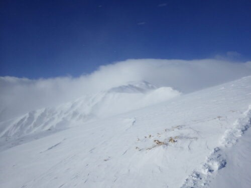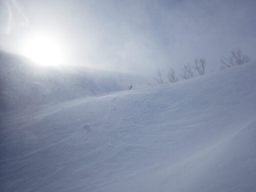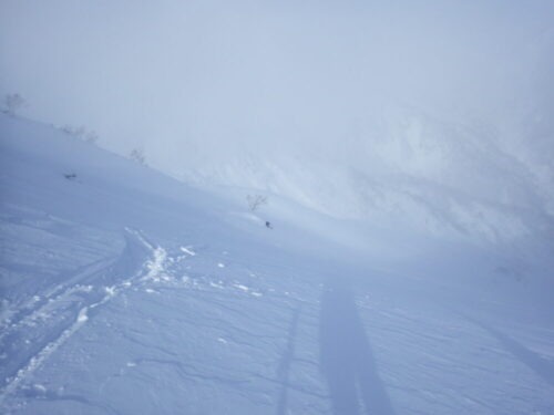 この日の山崎カールへのトレースは孤高の漢、Mさんラインを拝借。